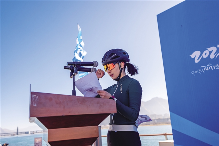 隨著發(fā)令槍響,選手們蹬踏出發(fā),瞬間點燃現(xiàn)場氣氛。經(jīng)過激烈角逐,各個組別的冠軍相繼產(chǎn)生。女子組冠軍由拉薩老隊員車隊的白瑪央吉摘得?!矮@得第一名,我感到非常榮幸和開心。這個賽道設(shè)計得非常有挑戰(zhàn)性,沿途風景如畫。這是我騎車的第五年,感謝主辦方提供了這個平臺,讓我有機會與全國各地的優(yōu)秀選手同臺競技,同時也要感謝我的隊友和教練的支持和鼓勵?!卑赚斞爰拥卣f。