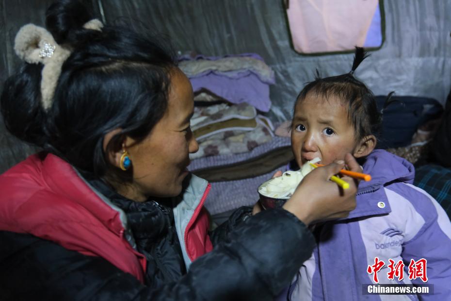 1月7日9時5分,西藏自治區(qū)日喀則市定日縣措果鄉(xiāng)附近(東經(jīng)87.45度,北緯28.50度)發(fā)生6.8級地震。日喀則市官方介紹,經(jīng)初步排查,截至當日15時,地震共造成95人遇難,130人受傷,房屋損毀正在統(tǒng)計中。圖為日喀則拉孜縣境內(nèi)的村民在臨時搭建的帳篷里吃飯。中新社記者 江飛波 攝