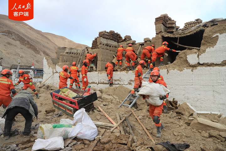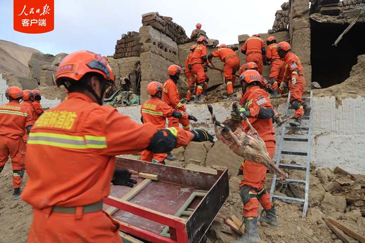 1月7日,西藏日喀則市定日縣發(fā)生6.8級(jí)地震后,西藏森林消防總隊(duì)指戰(zhàn)員第一時(shí)間趕赴受災(zāi)嚴(yán)重的措果鄉(xiāng)野江村展開救援。救援人員把埋在廢墟里的牦牛和生活物資搶救出來(lái)后,村民雙手合十,真誠(chéng)感謝黨和國(guó)家,感謝救援人員。