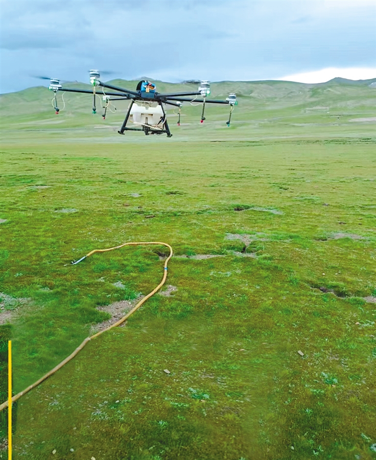 據(jù)介紹,高原毛蟲(chóng)是西藏高原牧區(qū)的重要害蟲(chóng),多發(fā)生在海拔3000至5000米的高山草原,對(duì)莎草科、禾本科、豆科、蓼科、薔薇科等各類牧草危害嚴(yán)重,嚴(yán)重影響牧草生長(zhǎng)和畜牧業(yè)的發(fā)展。在項(xiàng)目實(shí)施過(guò)程中,項(xiàng)目組確定使用植保無(wú)人機(jī)噴藥,防治高原毛蟲(chóng)。