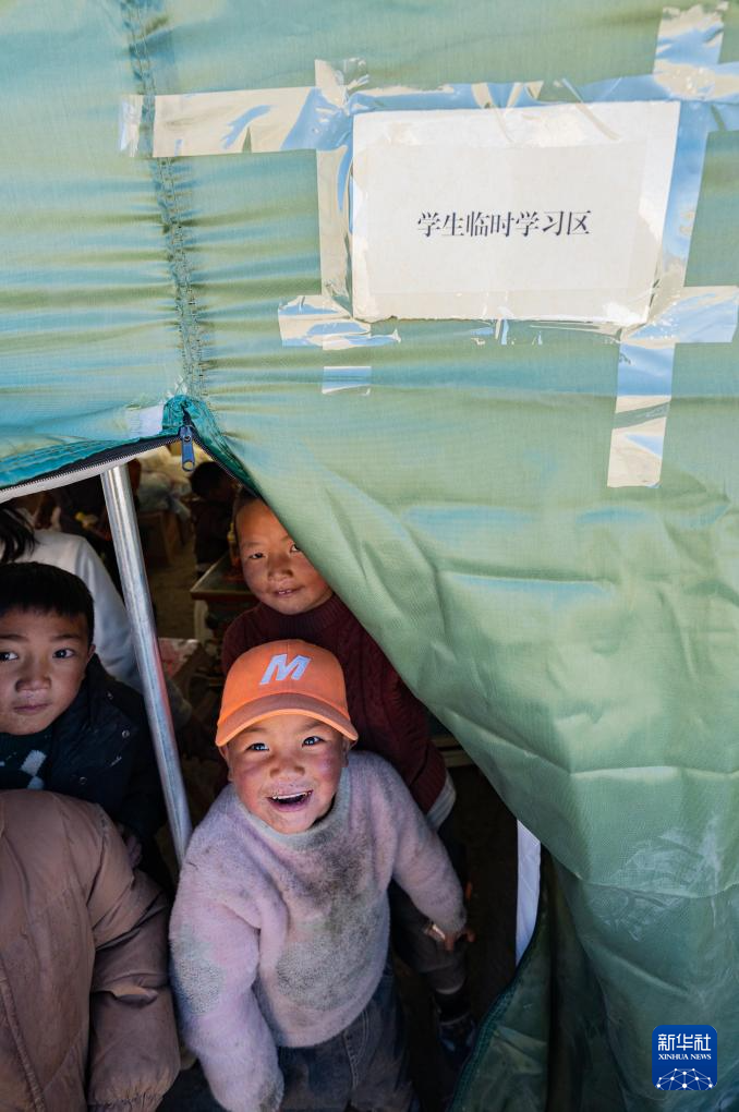 1月10日在定結(jié)縣郭加鄉(xiāng)乃村安置點學(xué)生臨時學(xué)習(xí)區(qū)拍攝的孩子們。新華社記者 丁增尼達 攝