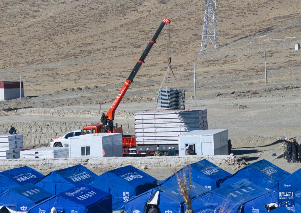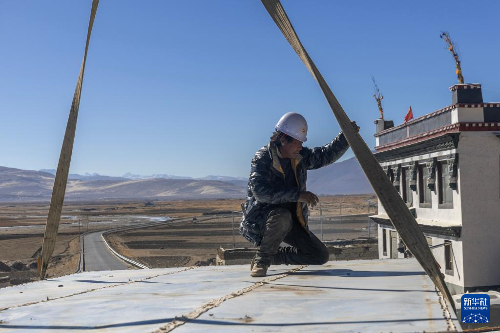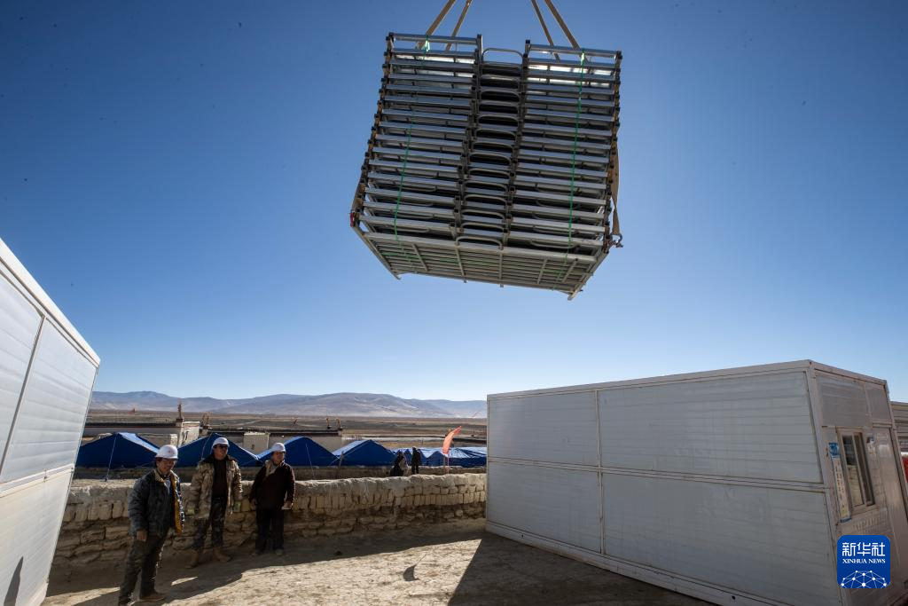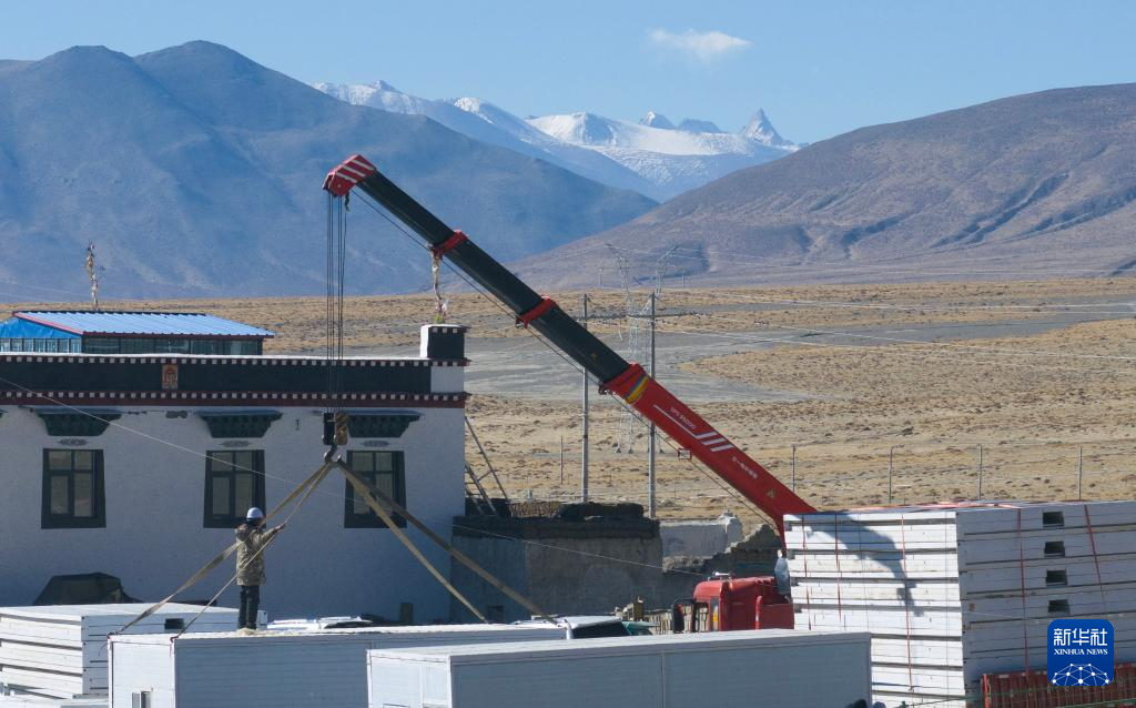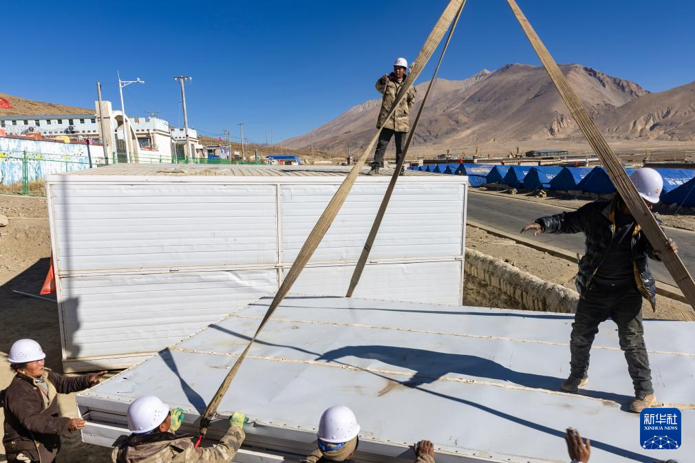當(dāng)日,在薩迦縣麻布加鄉(xiāng)白拉村,工程人員與有相應(yīng)技術(shù)的村民一起建設(shè)活動(dòng)板房。據(jù)了解,這是薩迦縣地震災(zāi)區(qū)開建的第一批板房。