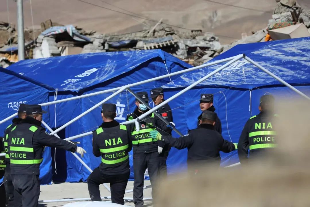 地震發(fā)生后,西藏邊檢總站日喀則邊境管理支隊救援民警不知疲倦地奔走在震中3個受損嚴(yán)重的村莊,了解震后群眾生產(chǎn)生活情況,協(xié)助解決面臨的各種困難問題。面對240頂帳篷,230戶1200余名災(zāi)民,民警們組建了抗震救災(zāi)雜村、嘎布村和玉白村臨時警務(wù)室,配備警力30人,實行24小時勤務(wù)模式,主要承擔(dān)交通疏導(dǎo)、宣傳教育、隱患排查、秩序維持、輔導(dǎo)功課、協(xié)助地方開展其他救援等任務(wù),同時設(shè)置常用藥箱,方便群眾用藥需求,被群眾親切地稱為“建在身邊的派出所”。