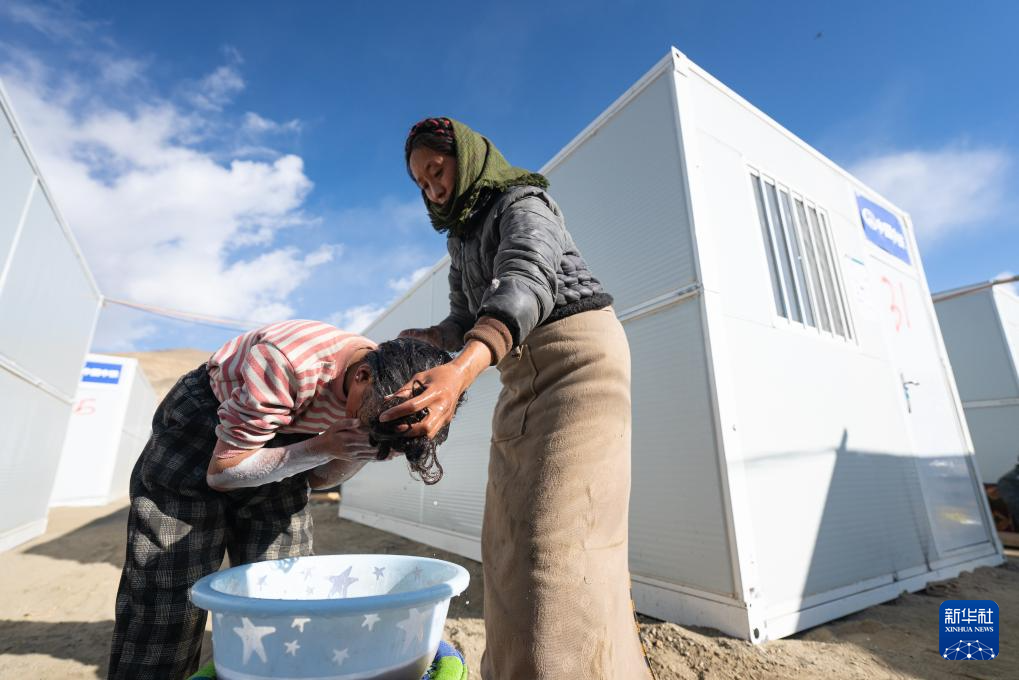 在定日縣長所鄉(xiāng)嘎旦村,一位婦女在幫女兒洗頭(1月13日攝)。新華社記者 丁增尼達(dá) 攝