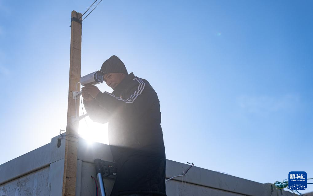 在定日縣長所鄉(xiāng)古榮村,工作人員在安裝監(jiān)控(1月13日攝)。新華社記者 丁增尼達(dá) 攝