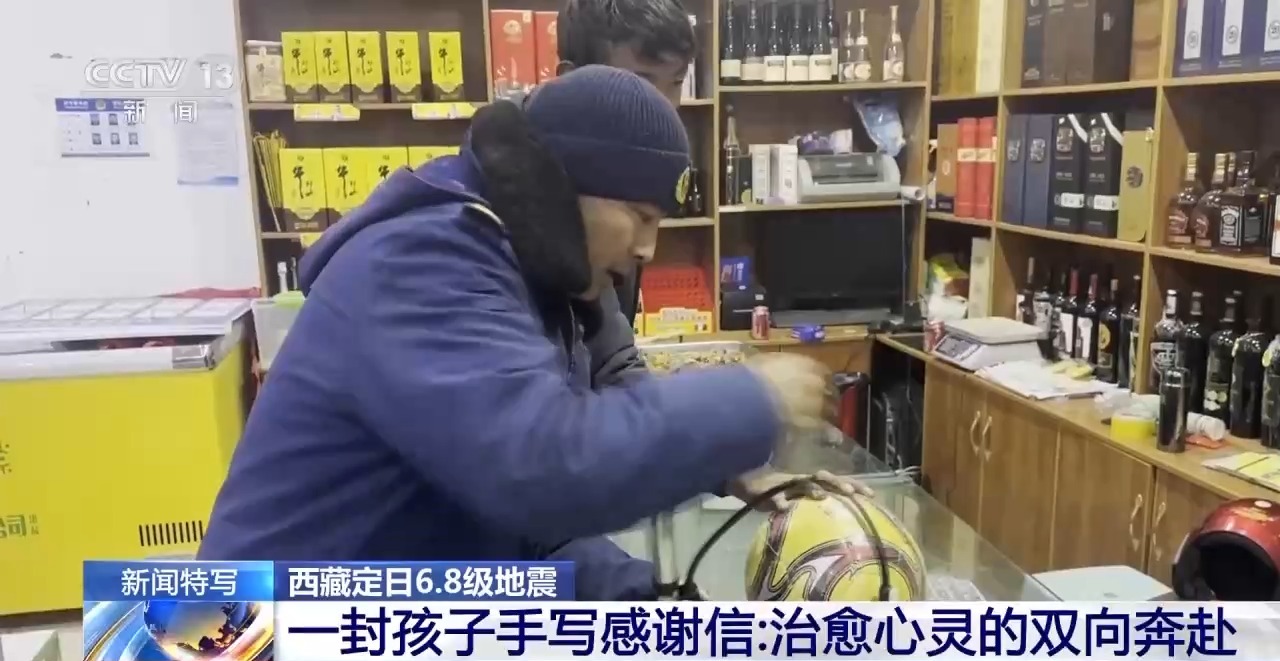 曲洛鄉(xiāng)野江村安置點內(nèi)有近一百名孩子。10日晚,一群小朋友把一個踩扁的易拉罐踢著玩,還拉著忙完的消防員一起切磋“球”技。這個視頻被日喀則市森林消防大隊的消防員隨手記錄下來并發(fā)在工作群里,一名消防員看到后,當(dāng)晚驅(qū)車到縣城買了一個足球。