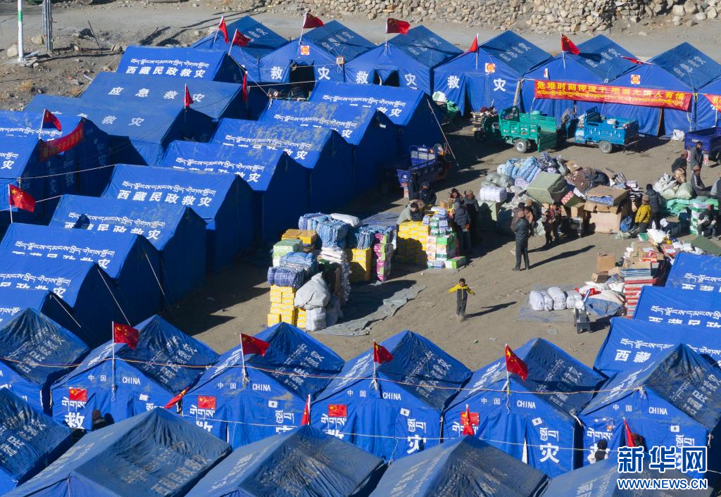 1月11日拍攝的薩迦縣麻布加鄉(xiāng)普村安置點(無人機照片)。新華社記者 李響 攝