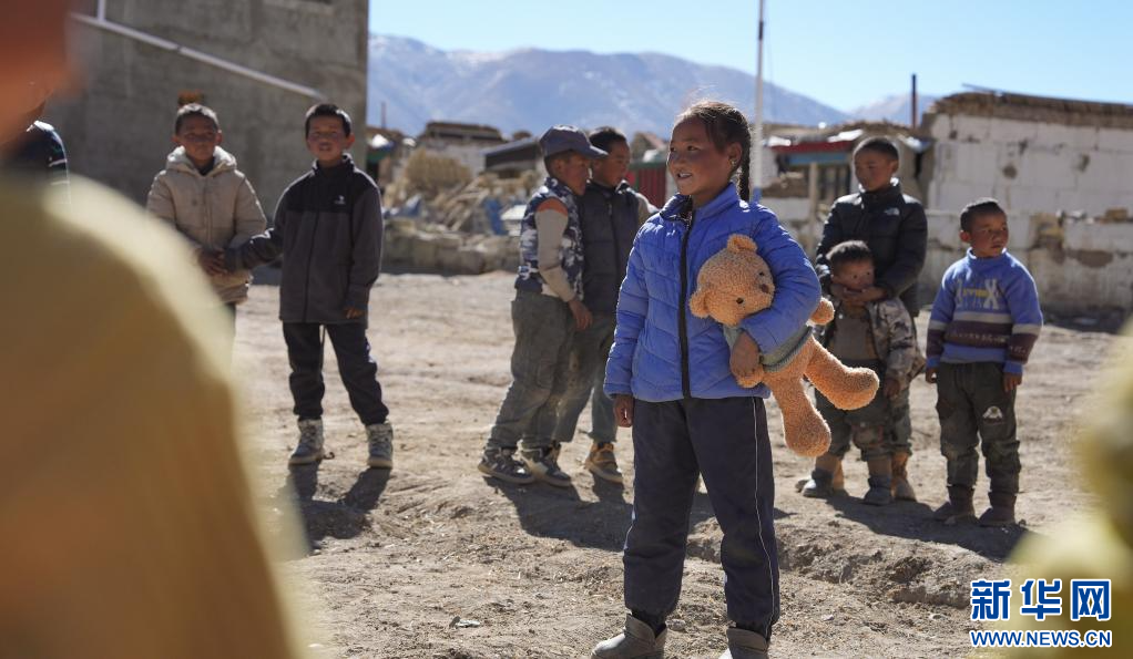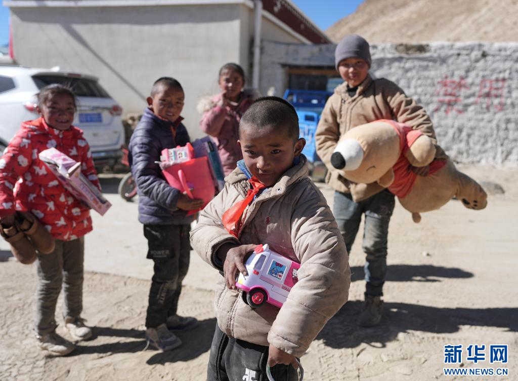 1月11日,災區(qū)的孩子們領到了愛心人士捐贈的玩具。新華社記者 晉美多吉 攝