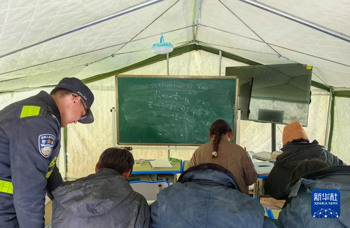 “大家看一下這道題怎么解?”在西藏日喀則市定日縣長所鄉(xiāng)嘎布村安置點(diǎn)的帳篷內(nèi),22歲的劉鑫磊一手指著黑板上的題目,一手拿著資料,耐心地給村里的高三學(xué)生講解。