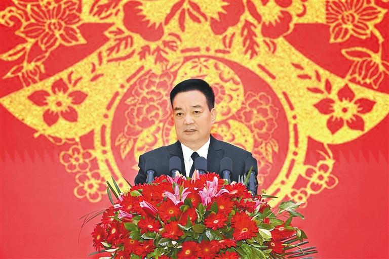 王君正在致辭中說(shuō),2024年是西藏經(jīng)濟(jì)社會(huì)發(fā)展歷程中不平凡的一年。自治區(qū)黨委團(tuán)結(jié)帶領(lǐng)全區(qū)各族干部群眾,深入貫徹落實(shí)習(xí)近平總書(shū)記關(guān)于西藏工作的重要指示和新時(shí)代黨的治藏方略,緊緊圍繞“四件大事”落實(shí),努力推動(dòng)長(zhǎng)治久安和高質(zhì)量發(fā)展取得新成效。牢固樹(shù)立總體國(guó)家安全觀,堅(jiān)持警鐘長(zhǎng)鳴、警惕常在,把維穩(wěn)工作做在日常、做到經(jīng)常、落實(shí)在基層,加快推進(jìn)依法治藏,建設(shè)更高水平的法治西藏,確保社會(huì)大局持續(xù)和諧穩(wěn)定,長(zhǎng)治久安的基礎(chǔ)更加牢固。完整準(zhǔn)確全面貫徹新發(fā)展理念,落實(shí)“三個(gè)賦予一個(gè)有利于”總要求,傳統(tǒng)產(chǎn)業(yè)提質(zhì)增效,新興產(chǎn)業(yè)加快發(fā)展,營(yíng)商環(huán)境持續(xù)優(yōu)化,努力推動(dòng)經(jīng)濟(jì)社會(huì)高質(zhì)量發(fā)展,確保經(jīng)濟(jì)發(fā)展當(dāng)前有活力、未來(lái)有潛力。(下轉(zhuǎn)第二版)(緊接第一版) 堅(jiān)持以人民為中心的發(fā)展思想,持續(xù)改善各族群眾的生產(chǎn)生活條件,改進(jìn)工作方式方法,采取針對(duì)性措施解決好群眾關(guān)心的醫(yī)療、教育、就業(yè)等實(shí)際問(wèn)題,西藏班招生規(guī)模不斷擴(kuò)大,全區(qū)城鄉(xiāng)面貌發(fā)生深刻變化,各族群眾的獲得感幸福感安全感持續(xù)增強(qiáng)。持之以恒推進(jìn)全面從嚴(yán)治黨,堅(jiān)決貫徹黨中央關(guān)于全面從嚴(yán)治黨的戰(zhàn)略部署,牢固樹(shù)立憑能力用干部、以實(shí)績(jī)論英雄的鮮明用人導(dǎo)向,努力建設(shè)一支忠誠(chéng)干凈擔(dān)當(dāng)?shù)母刹筷?duì)伍,黨的戰(zhàn)斗力、凝聚力、領(lǐng)導(dǎo)力、號(hào)召力不斷增強(qiáng)。日喀則市定日縣地震發(fā)生后,自治區(qū)黨委認(rèn)真貫徹落實(shí)習(xí)近平總書(shū)記重要指示精神和中共中央政治局常務(wù)委員會(huì)會(huì)議精神,按照黨中央、國(guó)務(wù)院決策部署,全區(qū)黨政軍警民齊心協(xié)力、協(xié)調(diào)聯(lián)動(dòng),廣大黨員干部勇于擔(dān)當(dāng)、沖鋒在前,科學(xué)救治受傷群眾,全力搶修基礎(chǔ)設(shè)施,妥善安置受災(zāi)群眾,確保了人民群眾生命財(cái)產(chǎn)安全,抗震救災(zāi)工作取得階段性勝利。西藏各項(xiàng)事業(yè)的發(fā)展進(jìn)步,是以習(xí)近平同志為核心的黨中央英明領(lǐng)導(dǎo)的結(jié)果,是習(xí)近平新時(shí)代中國(guó)特色社會(huì)主義思想科學(xué)指引的結(jié)果,是全區(qū)各族人民努力奮斗的結(jié)果。
