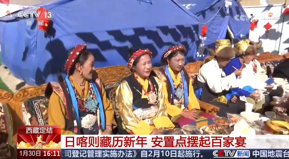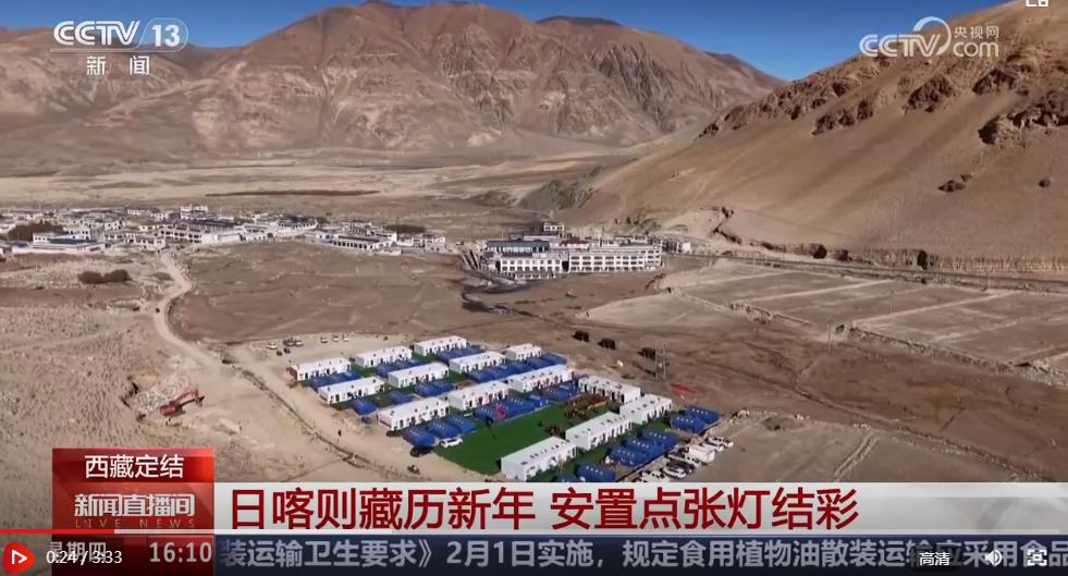 總臺(tái)央視記者 王莉:我現(xiàn)在是在日喀則定結(jié)縣的切村,今天是這里藏歷年的大年初一,是當(dāng)?shù)匾荒曛凶盥≈?、最重要的傳統(tǒng)佳節(jié)??梢钥吹?,現(xiàn)場(chǎng)已經(jīng)裝點(diǎn)得很有節(jié)日的氛圍,家家戶戶都貼上了春聯(lián),掛上了喜慶的燈籠和福字。雖然今年在安置點(diǎn)里過(guò)年,但人們依然保持著傳統(tǒng)的習(xí)俗,在這一天,一定要穿上隆重的藏裝,一起吃一頓團(tuán)圓飯。