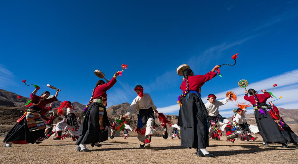 新年伊始,在西藏昌都市丁青縣尺犢鎮(zhèn)的草壩上,烏巴村文藝演出隊正在熱火朝天地排練。盡管寒風(fēng)凜冽,但激昂的鼓點和熱烈的音樂,讓這片土地充滿了生機與活力。