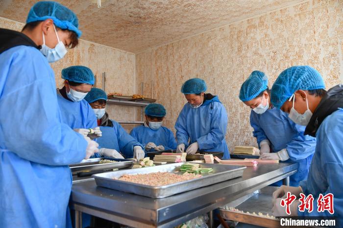2月10日,西藏拉薩市林廓北路一家卡塞店里,工人在制作卡塞?!翱ㄈ笔且环N油炸面食,是藏歷新年必不可少的食物。隨著藏歷新年的日益臨近,古城拉薩各個(gè)加工銷售“卡塞”的店鋪飄出陣陣香味。中新社記者 貢嘎來松 攝