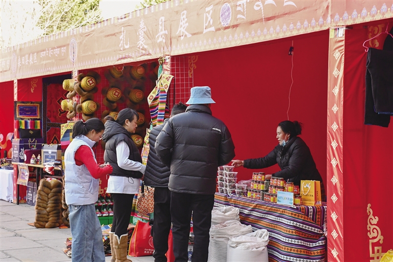活動現(xiàn)場,擺滿了各式各樣的山南特色農(nóng)產(chǎn)品,青稞產(chǎn)品、葡萄酒、牛羊肉、民族服飾、手工藝品等應(yīng)有盡有,令人目不暇接,吸引眾多市民停下腳步精心挑選。這些產(chǎn)品既充滿濃郁的地方特色,又是年前備受歡迎的暢銷好物。此次活動共有來自山南的27家商戶參展,帶來了100余種優(yōu)質(zhì)產(chǎn)品。市民們在各個展位之間穿梭,精心挑選著心儀的年貨,每個人臉上都洋溢著幸福的笑容。