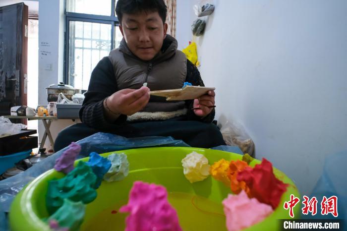“我大概從初中一年級開始,每年藏歷新年前都和父親來拉薩捏酥油花,除了種地和打工,酥油花是我們家的主要收入來源。”2月20日,在拉薩市城關(guān)區(qū)吉崩崗街道一出租房內(nèi),24歲的大學生扎西歐珠對中新社記者講述寒假捏制酥油花的經(jīng)歷。