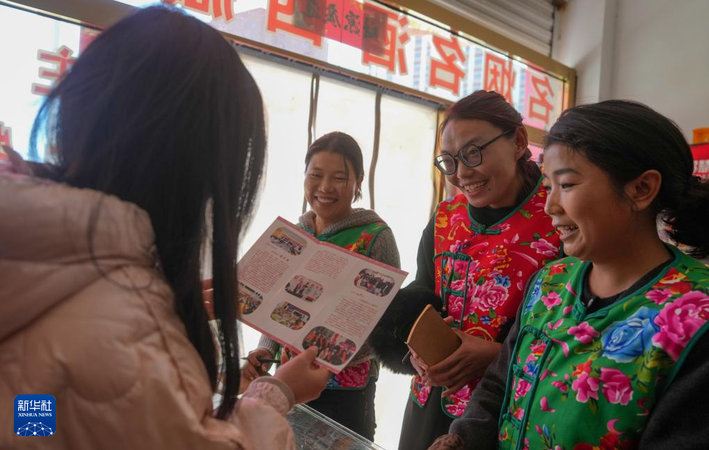 “花大姐”向轄區(qū)商戶(hù)發(fā)放議事會(huì)宣傳材料(3月6日攝)。新華社記者 晉美多吉 攝