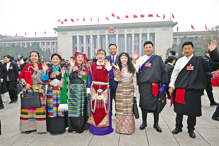 圖為閉幕會結(jié)束后,西藏全國人大代表信心滿懷走出會場。記者 旦增西旦 攝