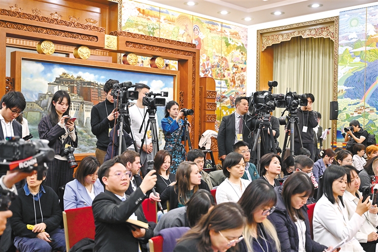 3月6日上午,十四屆全國人大三次會議西藏代表團(tuán)舉行開放團(tuán)組活動(dòng)。這是活動(dòng)現(xiàn)場。