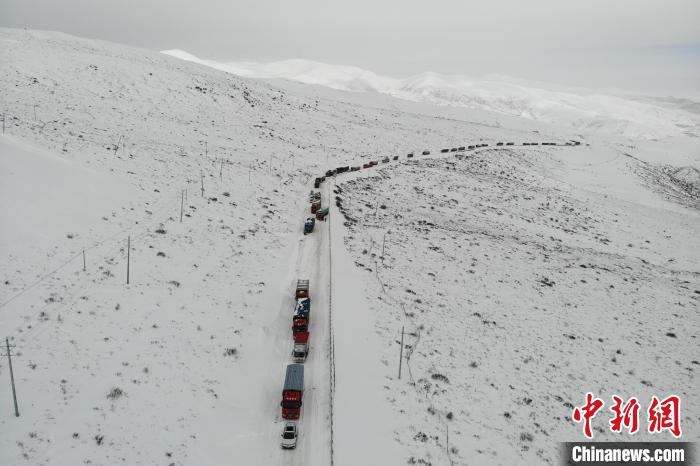 圖為道路積雪致使大量車輛人員滯留。楊繼明 攝