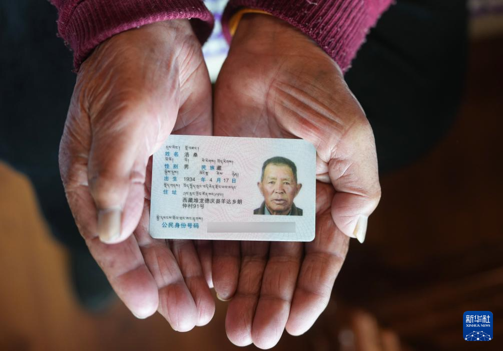 洛桑老人展示身份證(3月20日攝)。新華社記者 晉美多吉 攝