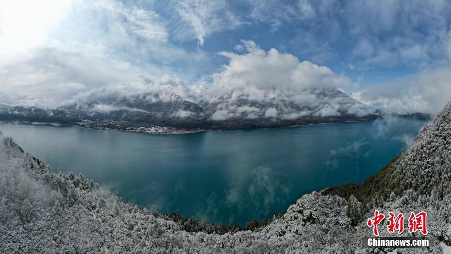 巴松錯(cuò)位于西藏林芝工布江達(dá)縣境內(nèi),地處巴河上游的高山峽谷中,是西藏首個(gè)自然風(fēng)景類國家5A級(jí)旅游景區(qū)。4月5日,巴松錯(cuò)迎來一場春雪,雪后四周原始森林猶如蒙上潔白面紗,湖面宛如一面藍(lán)寶石鑲嵌其中,風(fēng)光如畫。圖為4月5日,巴松錯(cuò)與四周的原始森林和雪山風(fēng)光。中新社記者 江飛波 攝