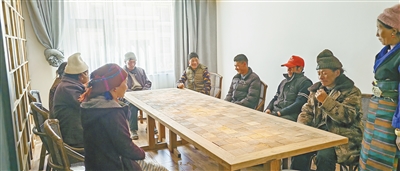 德吉村村民在新修建的民宿內商量下一步民宿如何發(fā)展。西藏自治區(qū)民委供圖