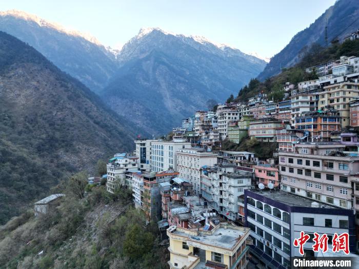 圖為晨曦中的樟木鎮(zhèn)。拉薩海關供圖