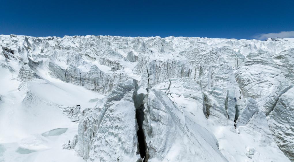 這是那曲市羌塘無人區(qū)內(nèi)的藏色崗日冰川(無人機(jī)照片,2024年5月11日攝)。新華社記者 丁增尼達(dá) 攝
