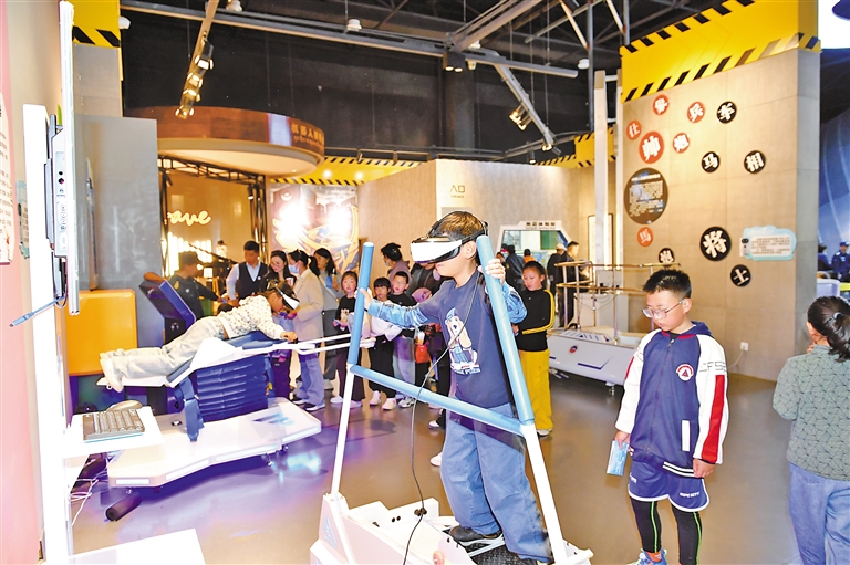 西藏自然科學博物館內(nèi)化身奇幻科技樂園,科技與人文碰撞出新的火花。在未來科技互動體驗區(qū),小朋友們戴上VR眼鏡,時而“攀登”珠峰之巔,時而“漫步”羌塘草原,更有幸“潛入”雪豹、藏羚羊的棲息秘境。另一邊則設置無人機飛行關卡,在闖關過程中,參與者通過遙控無人機飛行的探究式體驗,提升科技創(chuàng)新意識、動手實踐能力。