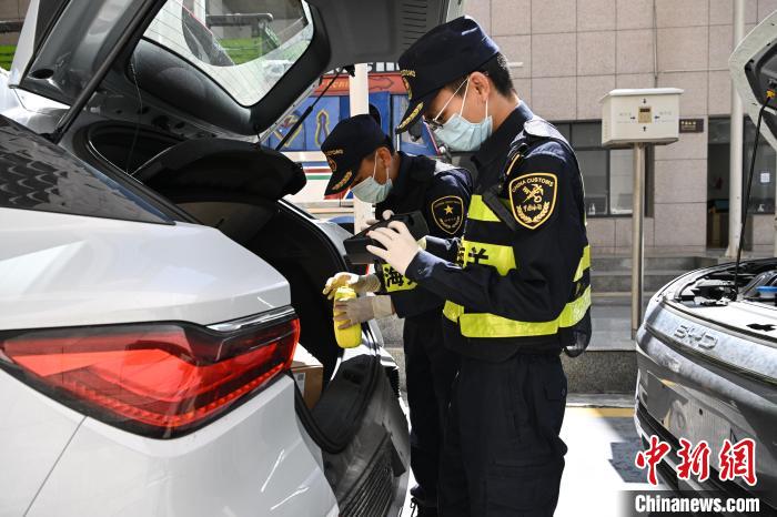 圖為西藏自治區(qū)日喀則市吉隆縣的吉隆口岸,海關工作人員在對出口的國產新能源汽車進行檢查。貢嘎來松 攝