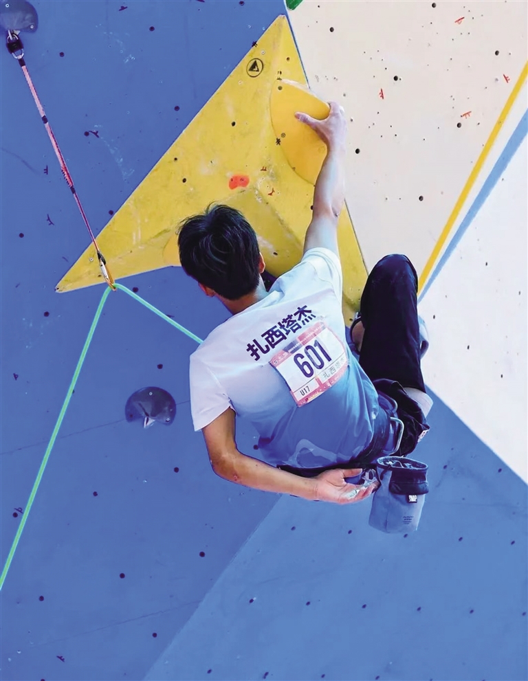 扎西塔杰進行攀石比賽。自治區(qū)體育局供圖