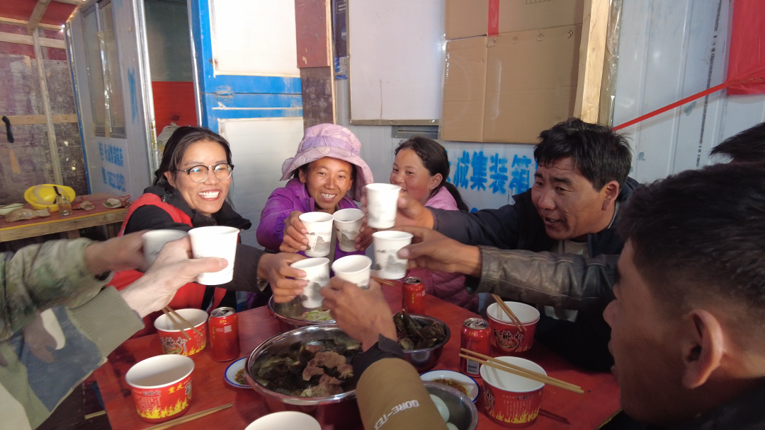 端午前夕,這份情誼化作最美的畫面。5月29日,康孔村飄著酥油香與粽葉青。村民準(zhǔn)備了酥油茶、水果,施工隊(duì)也擺上四菜一湯和粽子。大家圍坐在一起,你給我倒酥油茶,我給你遞粽子,歡聲笑語不斷。