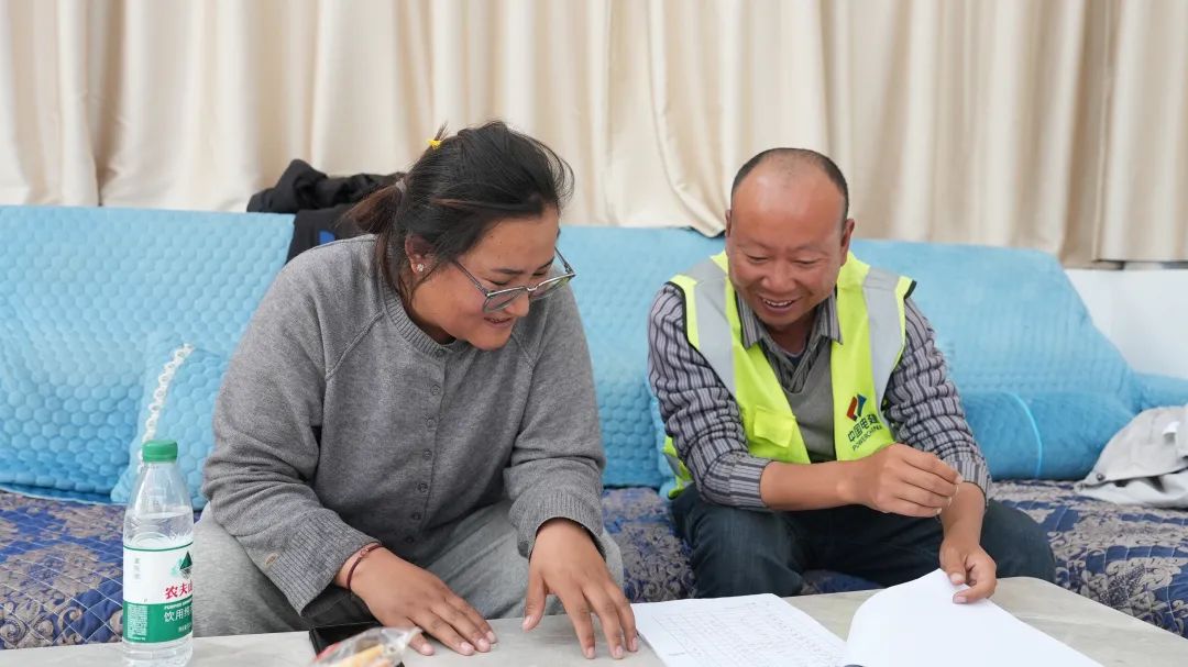 飯后,大家迅速投入工作,“拉巴家的房子地圈梁模板做完了嗎?”普布普尺邊詢(xún)問(wèn),邊認(rèn)真記錄。祝波耐心細(xì)致地介紹每一戶(hù)的施工情況。這個(gè)00后的小姑娘,在近幾個(gè)月與祝波的相處中,能力不斷提升,兩人在工作中配合默契,宛如老搭檔。