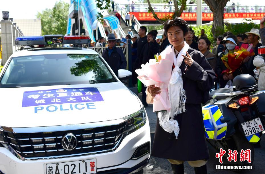6月9日上午11時30分,西藏自治區(qū)2025年普通高考完成所有科目考試。圖為家長在拉薩市拉薩中學(xué)考點(diǎn)外為結(jié)束考試的孩子獻(xiàn)哈達(dá)。中新社記者 李林 攝