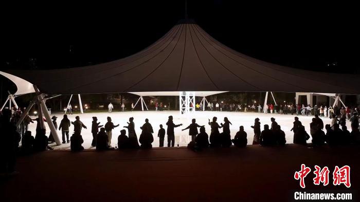 圖為當(dāng)?shù)孛癖娫谶_(dá)孜區(qū)社會(huì)主義核心價(jià)值觀主題公園跳鍋莊舞。達(dá)孜區(qū)委宣傳部供圖