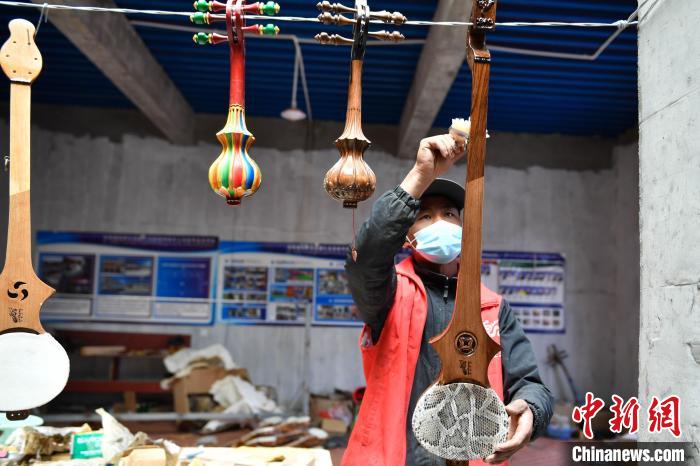 6月14日,記者走進(jìn)西藏自治區(qū)日喀則市拉孜縣熱薩鄉(xiāng),探訪(fǎng)中國(guó)國(guó)家級(jí)非物質(zhì)文化遺產(chǎn)“扎念琴制作技藝”的具體制作過(guò)程。扎念琴,又名六弦琴,是西藏傳統(tǒng)歌舞“堆諧”中最常用的彈撥樂(lè)器。扎念,藏語(yǔ)意為“悅耳動(dòng)聽(tīng)之聲”。在西藏,扎念琴深受廣大群眾喜愛(ài)。2014年,“扎念琴制作技藝”入選第四批中國(guó)國(guó)家級(jí)非物質(zhì)文化遺產(chǎn)代表性項(xiàng)目名錄。據(jù)了解,扎念琴制作共有5道基本程序:第一步,將整根木材掏空,做成共鳴箱;第二步,制作中間空心的琴桿,裝上名為“卡杺”的面板;第三步,雕刻“馬頭”或“龍頭”形狀的琴頭,安裝在琴桿頂部;第四步,制作附在琴頭、呈半圓形、向后彎曲且中間開(kāi)有弦槽的扎念弦軸。最后一步,挑選羊腸、牛筋、絲線(xiàn)等不同材料來(lái)制作琴弦。扎念琴制作技藝的特別之處在于,為了琴身的美觀,初制后還要通過(guò)雕刻馬頭、龍頭、火焰等形狀作為裝飾,讓扎念琴更具特色。圖為制作完成的扎念琴。貢確 攝