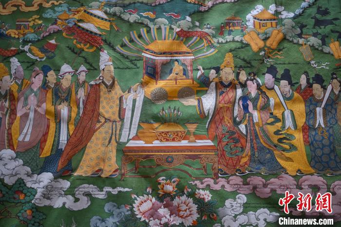 圖為民眾參觀唐卡《吐蕃贊普世系大唐卡金子明鏡》。貢嘎來(lái)松 攝