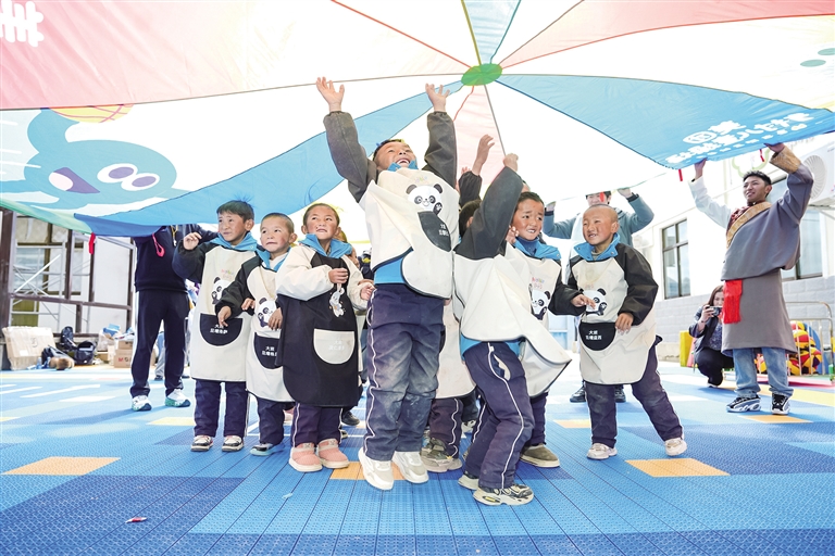 “老師快看!這里有跑道和斑馬線,太漂亮啦!”定日縣長所鄉(xiāng)幼兒園的拉巴次仁第一次踏上新落成的“太陽花”操場,興奮地邊跑邊向老師展示。據(jù)記者了解,此前孩子們在破損的懸浮地板上活動時經常摔倒,遇上雨雪天氣,戶外活動也只能取消。