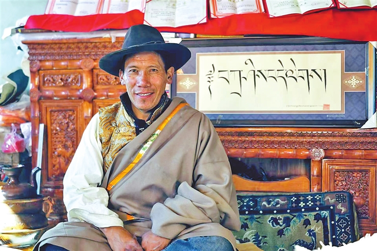 索朗多布杰告訴記者,他1976年8月生于尼木縣普松鄉(xiāng)普松村3組,十歲末起師從拉薩市級尼赤字非遺傳承人、原西藏書法協(xié)會委員扎西平措,學(xué)習(xí)尼赤字4年,期間還學(xué)習(xí)了藏文語法三十頌及正字等。