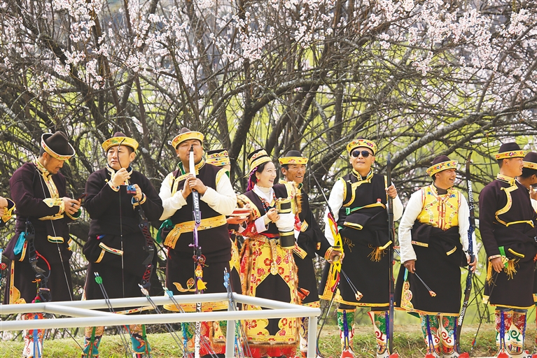 圖為2025年林芝桃花旅游文化節(jié)巴宜區(qū)分會場工布響箭展演活動現(xiàn)場。記者 謝筱純 攝