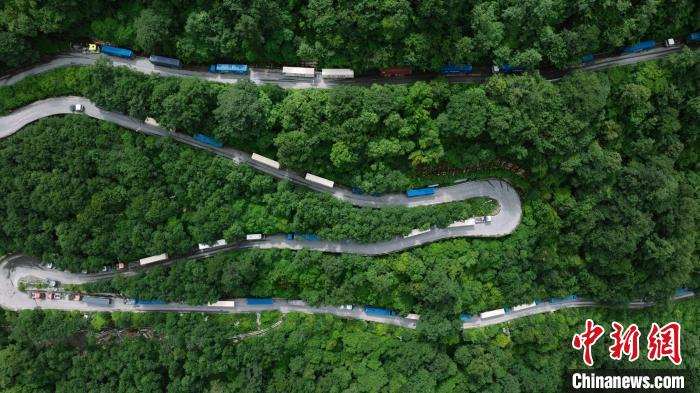 圖為7月15日,滿載出口貨物的車輛有序候檢。蔣美靈 攝