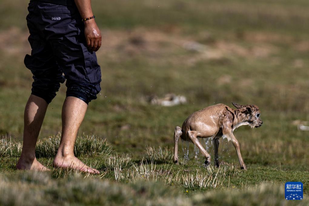 這是一只剛被管護(hù)隊(duì)員救上岸的藏羚羊幼崽(7月14日攝)。新華社記者 姜帆 攝?