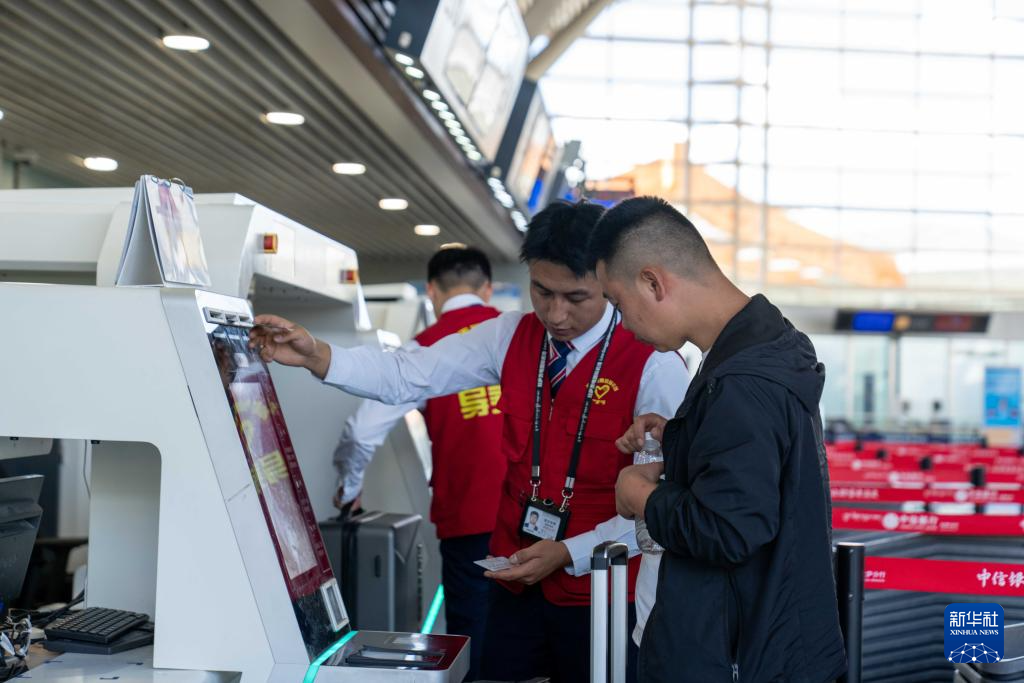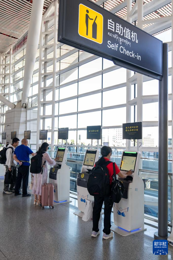 7月18日,旅客在拉薩貢嘎國際機(jī)場(chǎng)自助值機(jī)。新華社記者 旦增尼瑪曲珠 攝?