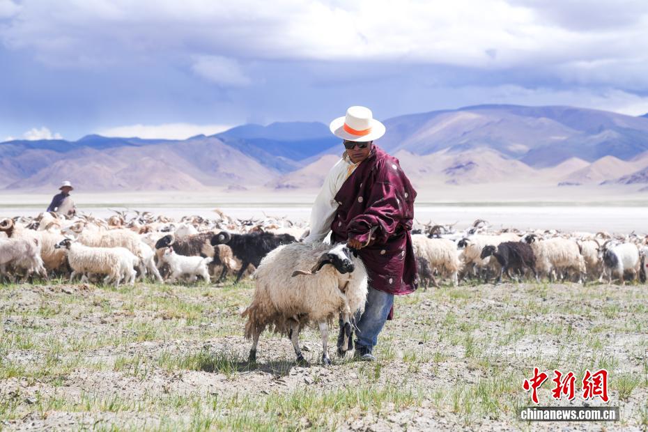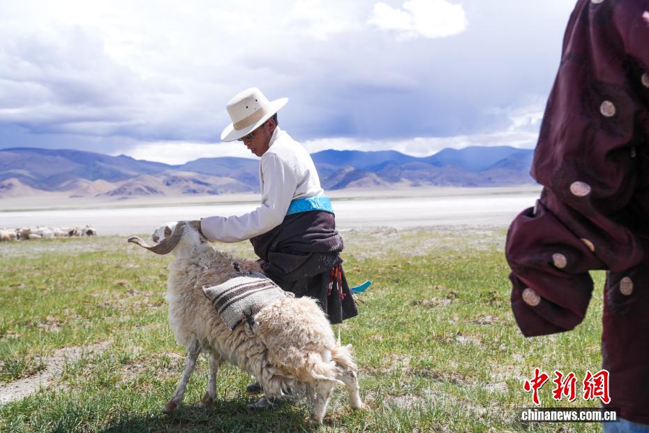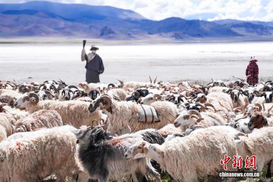 7月20日,在西藏阿里地區(qū)革吉縣鹽湖鄉(xiāng),牧民從羊群中牽引一只將要馱負(fù)鹽袋的羊。一千多年前,阿里地區(qū)有50多家駐扎的鹽幫,將自然鹽用羊馱牛背邊放牧邊運(yùn)輸?shù)姆绞剑\(yùn)送到普蘭、日喀則、印度、尼泊爾等地,并用以物易物的方式換回青稞、磚茶、布料等日常生活所需的物品,從而孕育了遠(yuǎn)負(fù)盛名的“鹽羊古道”傳奇。近年來,當(dāng)?shù)亻_辦粗鹽巴加工廠、打造“鹽羊古道”旅游品牌等方式,使千年“鹽羊古道”煥發(fā)新生機(jī)。中新社記者 張祥毅 攝