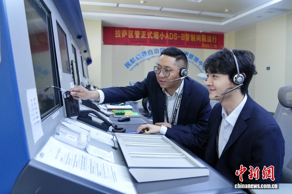 2025年是西藏自治區(qū)成立60周年,也是西藏民航通航60周年。在民航空管領域,管制員肩負指揮飛機運行、保障飛行安全等重要職責,具體分為區(qū)域管制員、塔臺管制員等角色。在位于拉薩貢嘎國際機場的民航西藏空管中心,59名漢族和18名藏族管制員通力合作,以“老帶新”“傳幫帶”,在守護藍天的崗位上譜寫了漢藏一家親的故事。圖為7月22日,區(qū)域管制員強旦(左,藏族)指導見習管制員王軒(右)發(fā)布指令。西藏地處高原地區(qū),氣象復雜多變,對區(qū)域管制員的綜合協(xié)調應對能力要求高,見習管制員的能力提升離不開師傅的殷切指導。中新社記者 張祥毅 攝