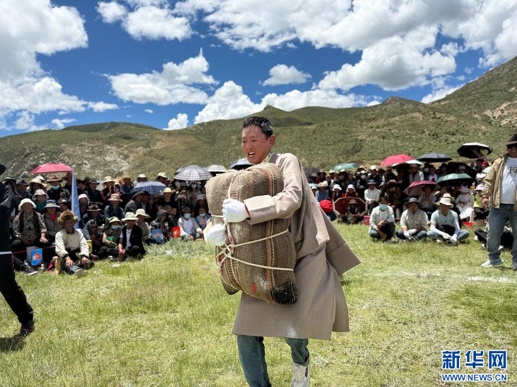 此次運動會集競技、文藝、特色產(chǎn)業(yè)展示于一體,亮點紛呈。拔河比賽中,參賽隊員齊心協(xié)力,觀眾吶喊助威,展現(xiàn)出團結(jié)奮進的精神風(fēng)貌;抱沙袋、押加等傳統(tǒng)項目激烈角逐,卡乃村村民普布扎西奪得抱沙袋男子組冠軍,他激動地表示:“和大家一起拼搏奪冠,特別有意義!”