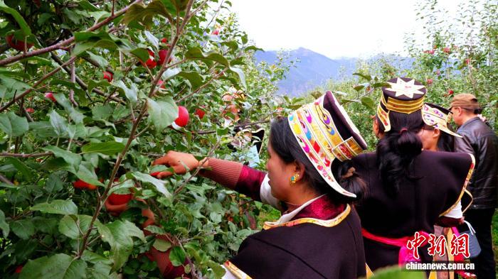 圖為米林農(nóng)民采摘蘋(píng)果。米林融媒體中心 供圖