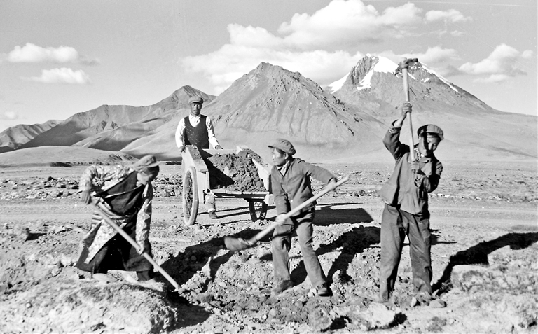 圖為上世紀70年代,加加養(yǎng)護段養(yǎng)路職工戰(zhàn)斗在雪山公路上(資料圖片)。 蘇遠忠 攝