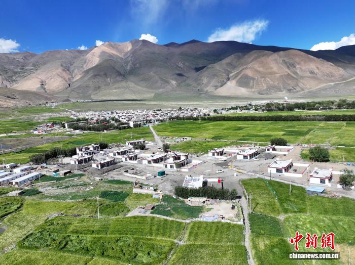 圖為新建成的西藏定日縣森嘎村。(無人機照片)貢嘎來松 攝