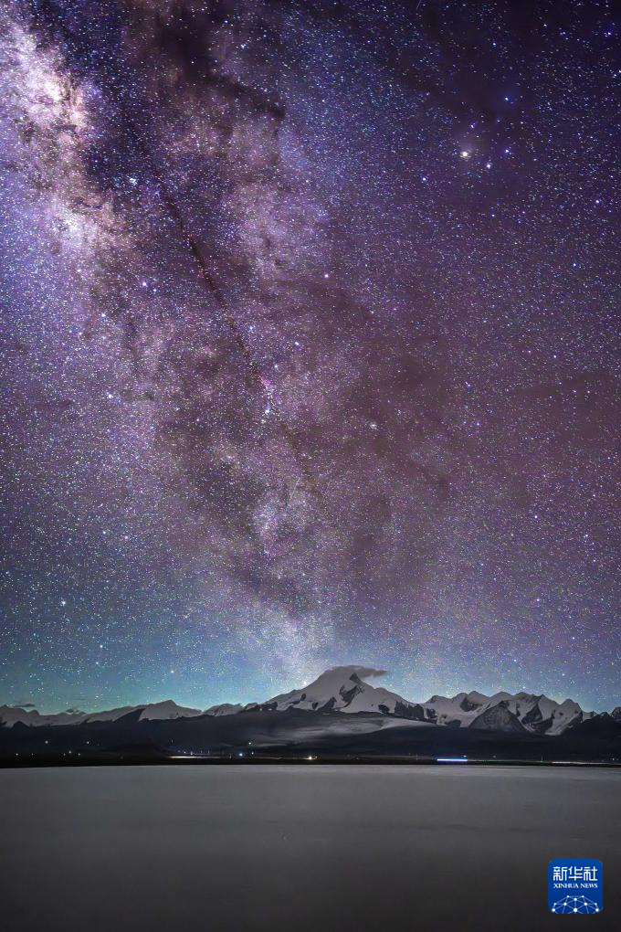 這是在佩枯錯(cuò)拍攝的銀河(8月14日攝)。周邊是英仙座流星雨的幾顆流星。新華社發(fā)(馬理朝攝)
